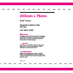 As standard, we offer printed retail shelf talkers in two size options – a smaller 75mm x 153 cut and a larger 75mm x 203 cut. We can also print them for you in bespoke sizes.